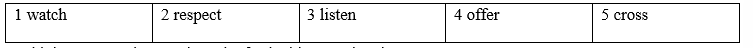 (Điền vào mỗi chỗ trống với respect, watch, cross, listen hoặc offer.)