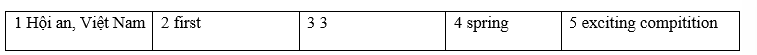 Hello and welcome to Fest Chat, your favorite festival podcast. I travel around the world to tell you about all the best festivals. This week I'm going to Hội an, a beautiful city in Vietnam for Tết. I can't wait. The festival takes place in the first lunar month and it lasts for three days. It's a traditional festival for people to celebrate the beginning of spring. Local people usually decorate their houses and visit their relatives. But there are also many things to see and do at Tet in Hội an. You can go to the Tet Fair and eat traditional foods. There are so many tasty things to try. You can also listen to live music at the fair. Children can take part in exciting competitions and win prizes. To me, it's one of the most interesting festivals in the world.