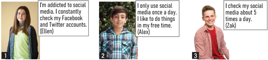 2. I only use social media once a day. I like to do things in my free time. (Alex)