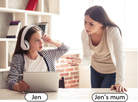 1. Look at the photos. What teenage challenge do you think she faces? 2. Listen and read a dialogue between Jen and Minh, her friend, to check. 3. Study the Grammar box, then find two more phrasal verbs in the text to fill in the blanks. 4. Match the phrasal verb with its meaning. 5. Choose the correct option to complete the sentences.