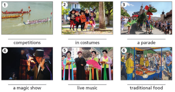 (Sử dụng các cụm từ từ Bài tập 5 để mô tả những gì em thích làm tại một lễ hội.)