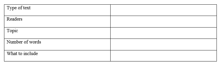 1 Read the task and complete the table.