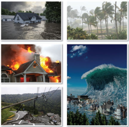 - fire (hỏa hoạn) - flood (lũ lụt) - typhoon (bão nhiệt đới) - tsunami (sóng thần) - earthquake (động đất) |