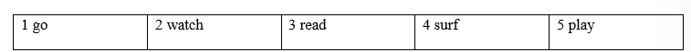 2 Fill in each gap with play, surf, watch, go or read.