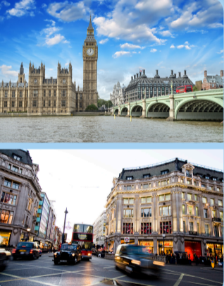 (London nổi tiếng với những công trình kiến trúc nổi tiếng, đặc biệt là tháp đồng hồ Big Ben.)