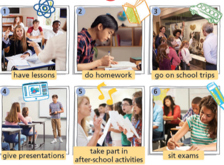 Take part in after-school activities: tham gia các hoạt động sau giờ học