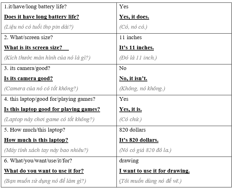 (Tham gia một cặp khác. Trợ lý bán hàng đã gợi ý cho bạn máy tính bảng hoặc máy tính xách tay nào? Bạn sẽ mua nó? Tại sao? (Tại sao không?))