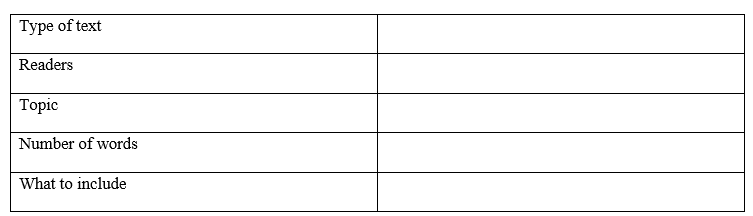1 Read the task and complete the table.