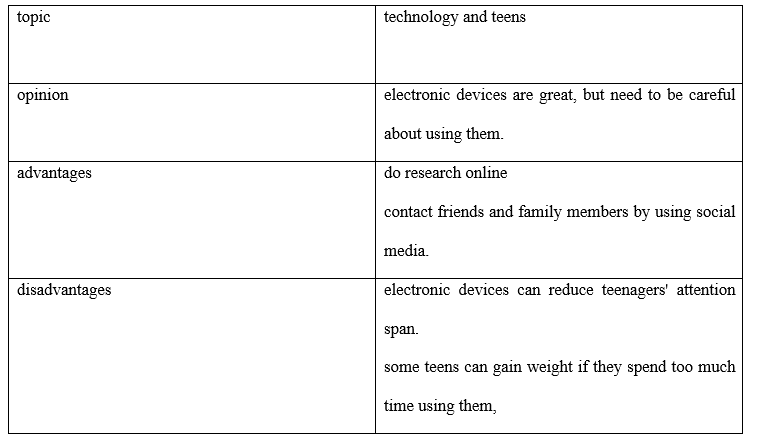 Unfortunately, there are also some disadvantages. Electronic devices can reduce teenagers' attention span. Some teens can gain weight if they spend too much time using them.