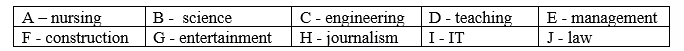 2. Match the words in the box with photos A-J. Listen and check. Which careers would you like to do a course in? Rate them from 1 to 10 (1 - like the least, 10 - like the most).