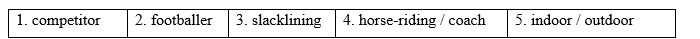 5. I’ve decided to take up swimming this summer. This can be both a / an _______ and _______ sports. (DOOR)
