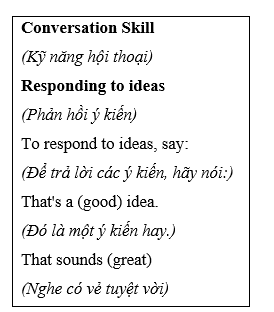 (Thực hiện thêm hai cuộc hội thoại bằng cách sử dụng các ý tưởng bên phải. Hãy nhớ sử dụng các đại từ chính xác.)