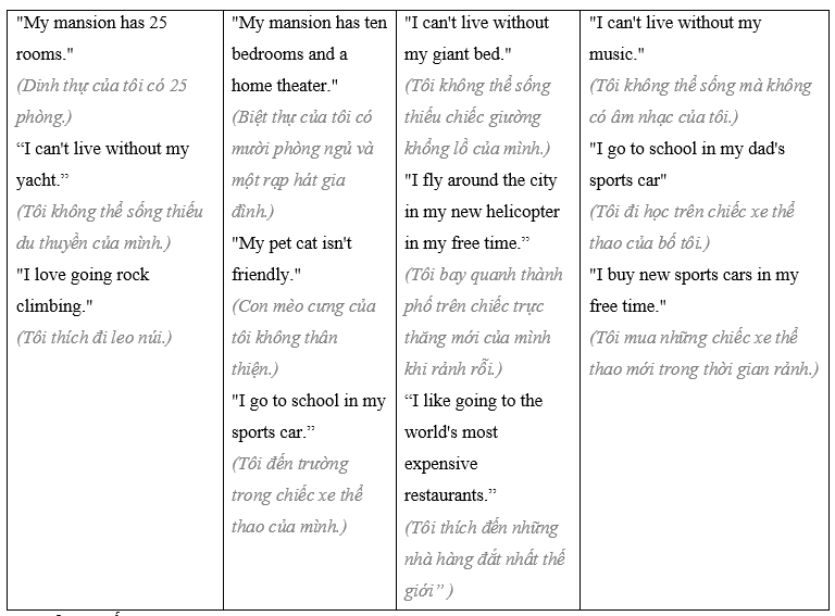 (Họ sống trong biệt thự và lái xe thể thao.)