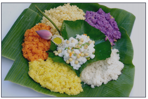 4. Listen to a teacher talking about five-coloured sticky rice. Circle what he mentions in the talk.