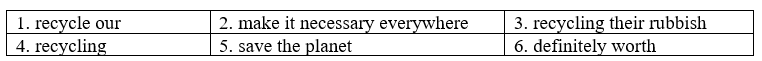 Louise: The main reason for recycling is to save the planet. It might need a lot of (5) work, but it’s definitely worth the (6) effort.