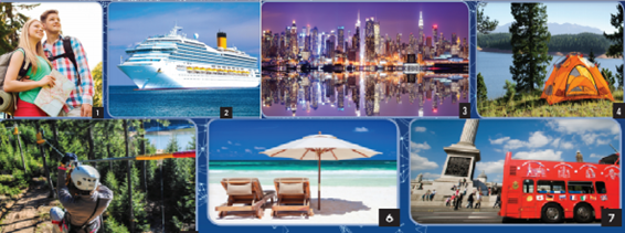 1. How do you prefer to travel? Look at the pictures below. How many types of transport can you name for each?2. Match questions 1-5 with responses a-e. In pairs, ask and answer the questions with your book closed. 3. Study the Vocabulary A box. Match the words with photos 1-7. 4. In pairs, describe: 5. Study the Vocabulary B box. In pairs, describe the items. Guess.