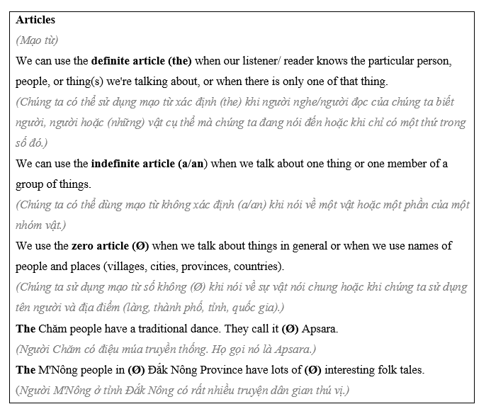 (Thực hành các cuộc đối thoại. Điền vào chỗ trống với những mạo từ đúng. Trao đổi vai trò và lặp lại.)