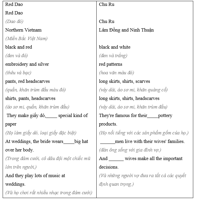 (Bây giờ, hãy đọc và điền vào chỗ trống.)