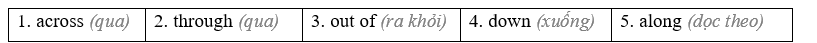 (Chọn từ hộp giới từ đúng để hoàn thành các câu. Một số giới từ có thể không được sử dụng.)