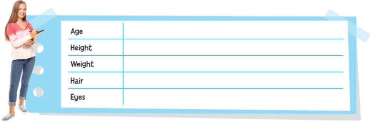 1 a) Complete the table with the words from the list. b) Write the adjectives to match their descriptions. c) Use the words/phrases in Exercises 1a and 1b to talk about your friends and family members. 2 a) Complete the table with the words from the list. b) What foods and drinks do you like? Tell your partner.