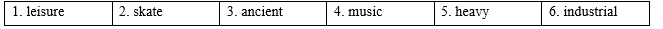 Our town is fun when you have free time because there are lots of (1) l_____ facilities. The best thing is the new (2) s_____ park – you’ll find me there a lot! There are nice green spaces, too, and they’ve opened the (3) a_____ ruins where you can hang out in the summer. If you fancy going to a concert with friends, there’s also a cool (4) m_____ venue.