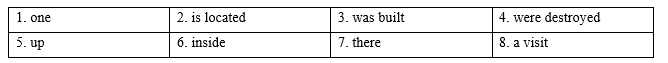 The hoard was (4) _____ in the grave of an ancient ruler around (5) _____ years ago. The hoard consists of a gold necklace, two large bowls and some ancient weapons. These were (6) _____ from the ground by a group of archaeologists, and they were (7) _____ by experts at the British Museum. The necklace, in particular, is well (8) _____ and it is worth more than £50,000.