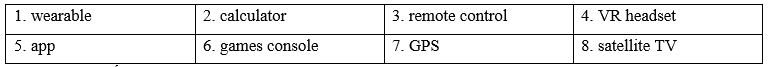 1. What technology makes your life easier? Which devices do you use every day? 2. Match eight words from the box with photos 1-8. 3. Listen to a conversation. Which things from exercise 1 do the people mention?
