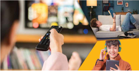 B: We can watch TV shows or movies.