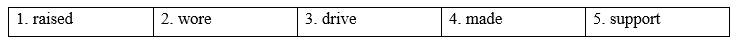 (Điền vào từng khoảng trống drive, wore, support, raised hoặc made.)