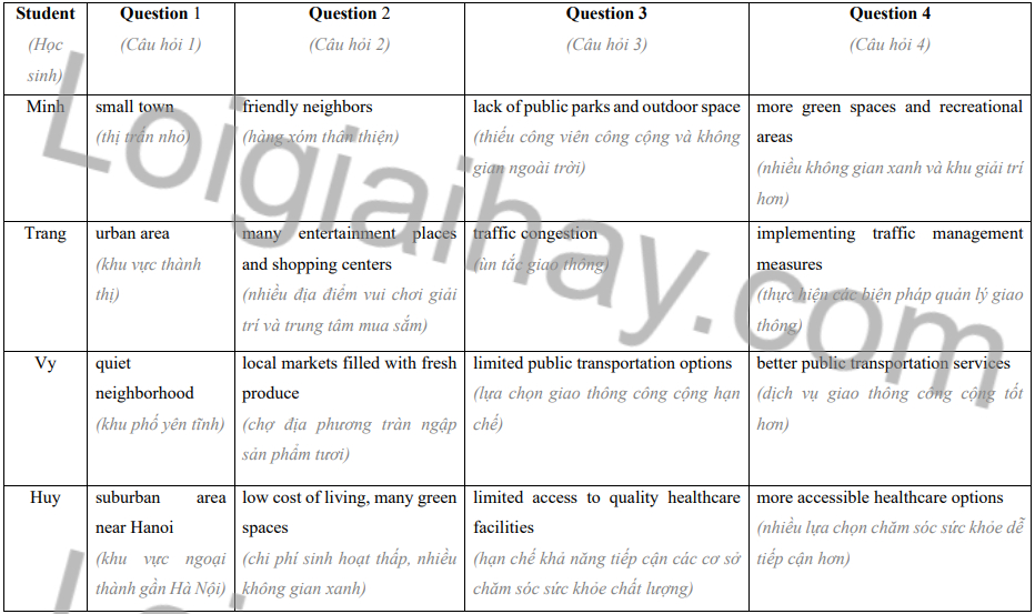 (Thu thập câu trả lời. Sử dụng bảng dưới đây.)