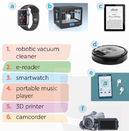 1. Match the electronic devices with the correct pictures.