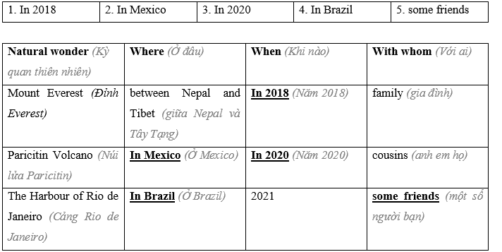 (Hãy tưởng tượng bạn đã đến thăm một số kỳ quan thiên nhiên trong Bài tập 1. Hãy kể cho bạn cùng lớp nghe về chuyến đi của bạn.)