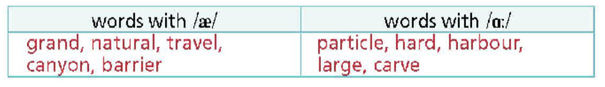 1. Listen and repeat. 2. Put the words into the correct columns. Practise saying them with your partner. 3. Listen to a dialogue about holidays to some natural wonders and complete the gaps (1-5). Write ONE WORD AND/ OR A NUMBER for each gap.