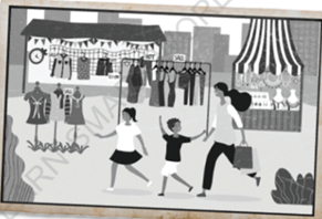 4. Grandpa and his parents would look at all the food and clothes stalls at the market.