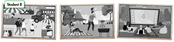 (Theo cặp: Học sinh A, bạn là ông bà. Nói về những điều đáng nhớ bạn đã làm bằng cách sử dụng những bức ảnh và ý tưởng của riêng bạn. Học sinh B, bạn là cháu. Lắng nghe và đặt câu hỏi.)