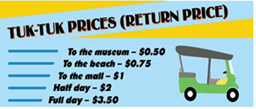 (Đi đến khu mua sắm và bãi biển tốn bao nhiêu tiền?)