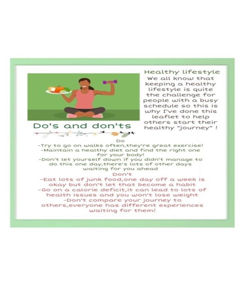 2. Collect more information and create a leaflet about Dos and Don’ts for a healthy lifestyle. Use the Information in Exercise 1 and/or your own ideas.