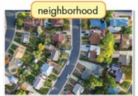 8. My ___________is great. There's a huge park, and there are lots of nice houses in the area.