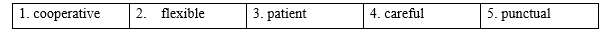 (Điền vào từng chỗ trống bằng punctual, flexible, careful, patient hoặc cooperative.)