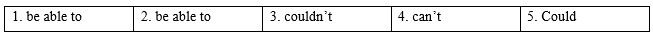 (Hoàn thành các câu với dạng đúng của “can”, “could” hoặc “be able to”.)