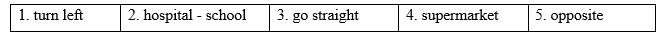 Thông tin: “Turn right at the corner and it's next to the supermarket.”