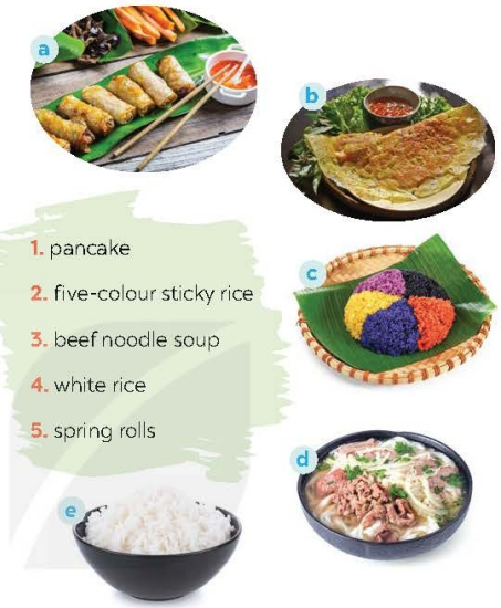 5. Work in groups. Match the Vietnamese dishes with their names in English.