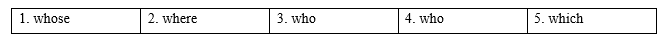 (Hoàn thành các câu với “who”, “whose”, “where” hoặc “which”. Những đại từ nào có thể được thay thế bằng “that”?)