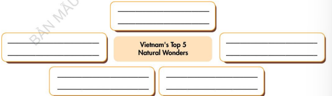 (Bạn đang lập danh sách 5 kỳ quan thiên nhiên hàng đầu của Việt Nam. Theo nhóm ba người: Thảo luận những điều kỳ diệu cần thêm vào danh sách và điền vào các ô.)