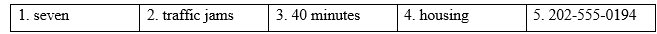 Chào buổi sáng. Hôm nay tôi là Sandra Lewis. Chúng ta hãy xem lại tất cả những thay đổi quan trọng đã xảy ra năm ngoái ở Wheatsville. Tôi rất vui mừng thông báo với các bạn rằng đã có rất nhiều thay đổi tích cực. Đầu tiên, thành phố xây dựng bảy công viên mới vì quần thể động vật hoang dã đang giảm dần. Bây giờ thành phố của chúng tôi có tổng cộng 242 công viên. Tiếp theo, số lượng ùn tắc giao thông ngày càng tăng vì ngày càng có nhiều ô tô. Thành phố bổ sung thêm 40 xe buýt mới và xây thêm ba cây cầu. Mọi chuyện trở nên tồi tệ đến mức mọi người nói rằng họ phải mất trung bình 40 phút để đến nơi làm việc. Chúng tôi vui mừng thông báo rằng kể từ đó tình trạng ùn tắc giao thông và tai nạn đều giảm. Một thay đổi lớn nữa là thành phố xây thêm nhà ở cho người nghèo vì số người vô gia cư ngày càng tăng. Nếu bạn đang gặp khó khăn hoặc biết ai đó có thể cần trợ giúp, vui lòng liên hệ theo số này 202-555-0194. Đó là 202-555-0194.