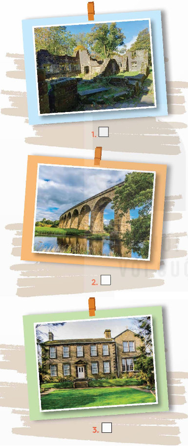1. Work in pairs. Discuss if these statements are true. 2. A tour guide is announcing the schedule for a one-day trip to the home of the Brontes. Listen and complete the missing information. 3. Look at the pictures, listen again and tick (✔) the two which illustrate the ideas of the listening passage. 4. Work in pairs. Discuss and tick (✔) the thing(s) that the tour guide in the listening passage mentions in her announcement at the beginning of the tour. 5. Write a paragraph (100-120 words) intr