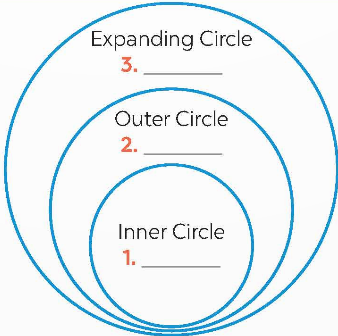 (Vòng tròn cuối cùng là Vòng tròn mở rộng. Những người trong vòng tròn này nói tiếng Anh như một ngoại ngữ.)