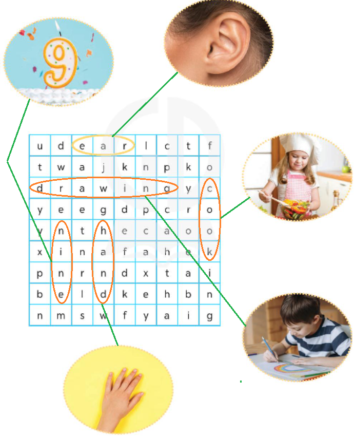 1. Find, circle and match. 2. Quiz time. 3. Look and match.