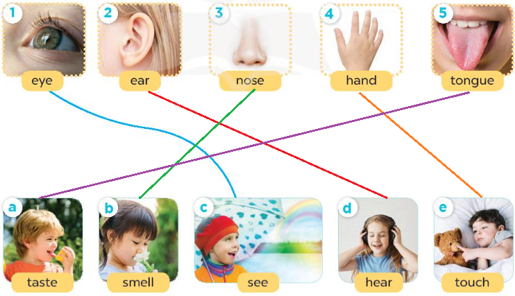 4 - e: hand (bàn tay) - touch (chạm vào)