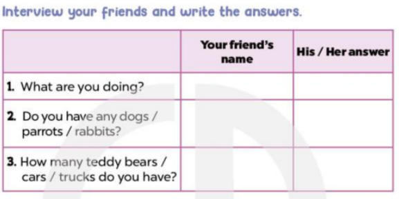 (Phỏng vấn bạn bè và viết câu trả lời.)